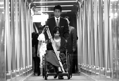 11日,韓亞航空出事客機一名受傷的乘務(wù)員出院后,抵達韓國仁川機場。