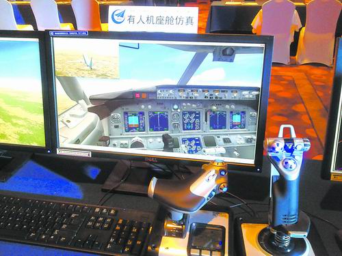 操控系統(tǒng)近年來取得長足進步。圖為觀眾體驗無人機操控