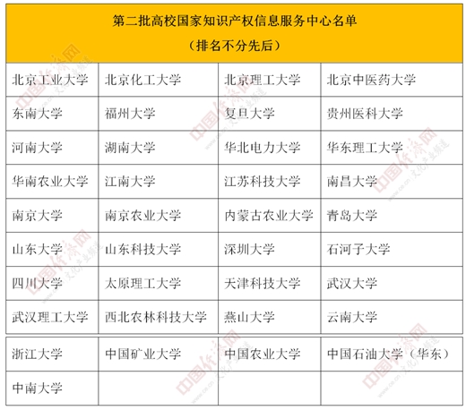 據(jù)中國經(jīng)濟(jì)網(wǎng)文化產(chǎn)業(yè)頻道記者了解,2019年3月7日,經(jīng)國家知識產(chǎn)權(quán)局辦公室聯(lián)合國家教育部辦公廳公布,北京大學(xué)等23家高校已入選“首批高校國家知識產(chǎn)權(quán)信息服務(wù)中心”名單。隨著第二批37家高校的入選,“高校國家知識產(chǎn)權(quán)信息服務(wù)中心”總體數(shù)量增至60家。