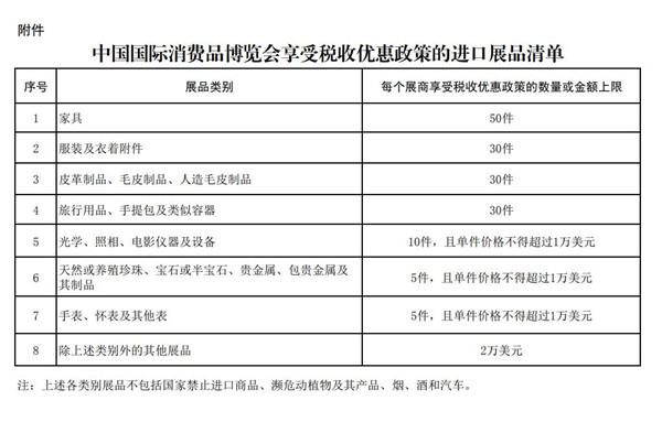 附件:中國國際消費(fèi)品博覽會(huì)享受稅收優(yōu)惠政策的進(jìn)口展品清單