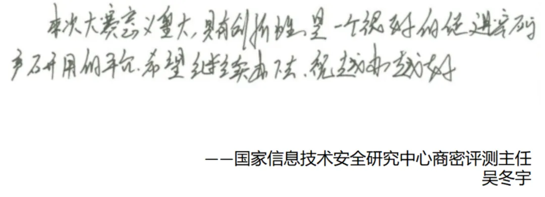 賽后,密碼科技國(guó)家工程研究中心研究員秦小龍、中國(guó)電力科學(xué)研究院高級(jí)工程師李智虎、中國(guó)科學(xué)院大學(xué)網(wǎng)絡(luò)空間安全學(xué)院教授/博導(dǎo)王躍武、國(guó)家信息技術(shù)安全研究中心商密評(píng)測(cè)主任吳冬宇等多位專家評(píng)委給大賽提出了寶貴的建議和意見。