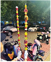 “從50cm到150cm都可訂制,最近開始在網(wǎng)上走紅,不少人覺得拍照好看?!钡曛骼钆拷榻B,每天都是滿單,一周能賣上百串。從早穿到晚都忙不過來,需要提前兩天預訂。