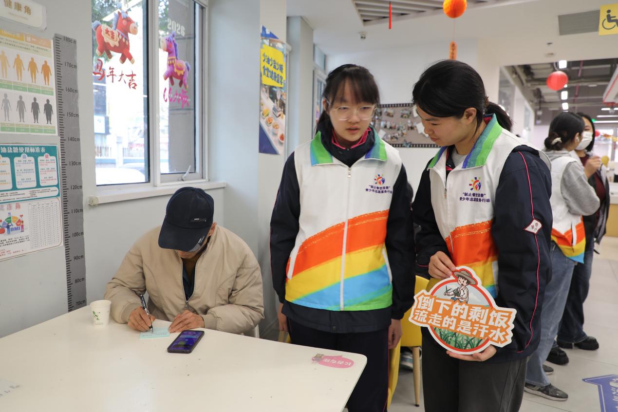 志愿者們積極參與“制止餐飲浪費”青少年志愿服務(wù)行動。 中國經(jīng)濟網(wǎng) 王巖/攝