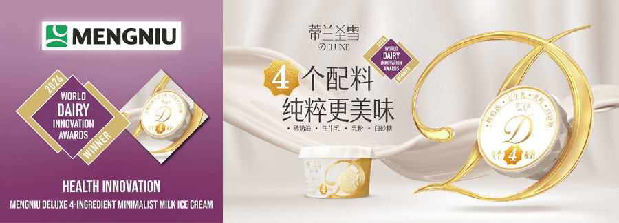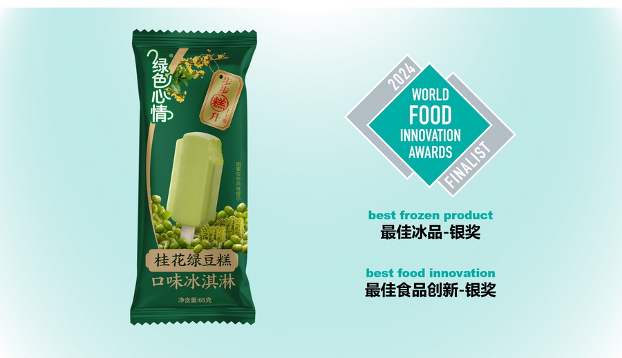 蒙牛旗下高端冰淇淋品牌帝蘭圣雪滿足消費者對于零食產(chǎn)品潔凈配料的健康需求,僅用4個配料造就極簡牛乳冰淇淋,成為全球最短配料表的冰淇淋。輕松斬獲2024WDIA世界乳品創(chuàng)新獎——健康創(chuàng)新金獎、憑借16項專利技術(shù)榮獲輕工業(yè)聯(lián)合會科技進步二等獎。綠色心情憑借產(chǎn)品創(chuàng)新碩果累累,綠色心情綠豆糕接連榮獲IFE世界食品創(chuàng)新獲獎、最佳冰品獎;CBIC飲品冷飲年會2024年值得品嘗的冷飲新品三項大獎;綠色心情綠莎莎脆筒榮獲IFE世界食品最佳零食獎。