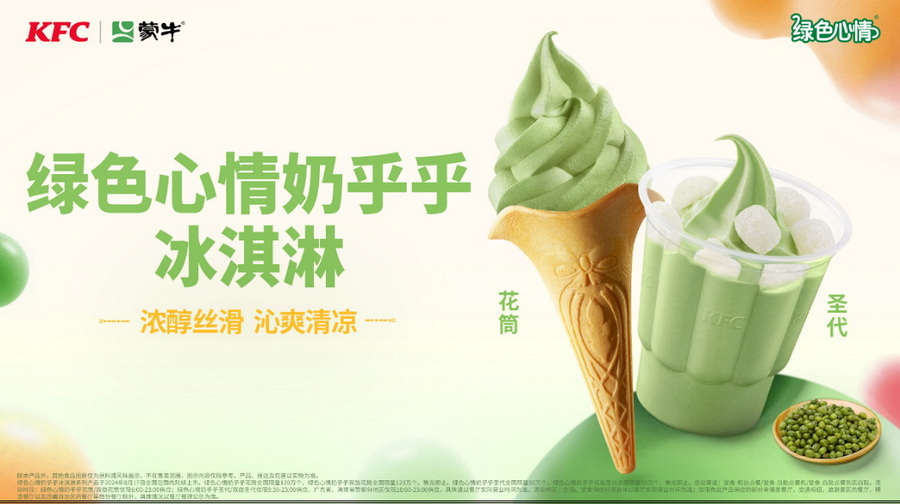隨變聯(lián)合肯德基打造九珍果汁脆皮冰淇淋,粉巧脆皮搭配九珍果汁軟芯,清甜微酸,一口入夏。作為二十年的經(jīng)典品牌,綠色心情與肯德基攜手聯(lián)名“綠色心情奶乎乎冰淇淋”,已在全國萬余家線下肯德基門店上市,綠豆風味冰淇淋奶香濃郁,絲滑沁爽,為夏日帶來一抹特別的綠色清涼。