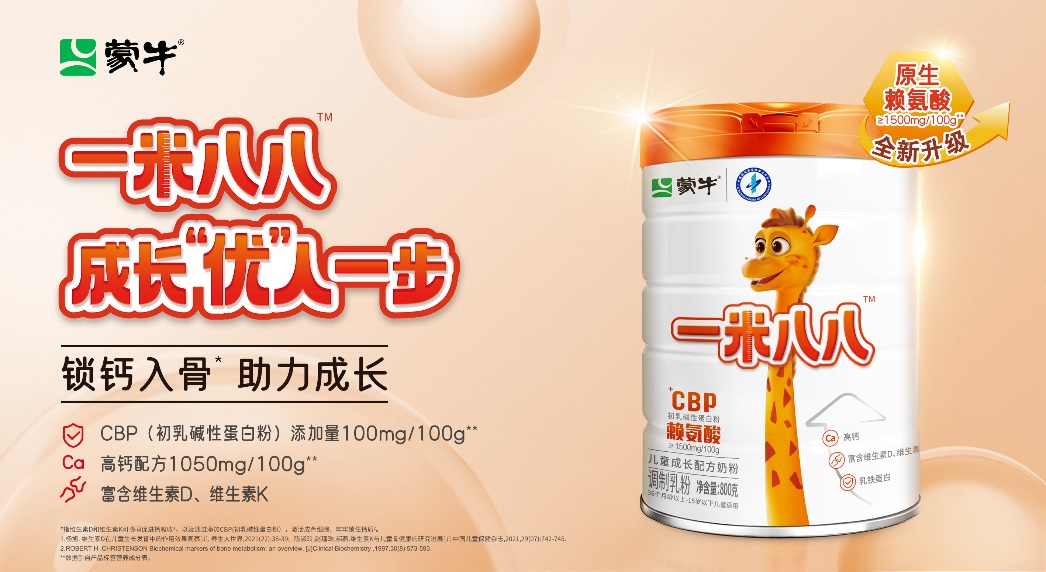 為了滿足兒童在不同成長(zhǎng)階段的需求,蒙牛一米八八首創(chuàng)添加初乳堿性蛋白(CBP),鎖鈣入骨,志在為中國(guó)兒童骨骼成長(zhǎng)發(fā)育提供專業(yè)的解決方案。上半年,與中國(guó)學(xué)生營(yíng)養(yǎng)與健康促進(jìn)會(huì)合作科研實(shí)證,蒙牛一米八八奶粉針對(duì)學(xué)齡前兒童干預(yù)組在60天內(nèi)身高增長(zhǎng)明顯,相較于對(duì)照組,身高差異高達(dá)30%。憑借強(qiáng)大的科研優(yōu)勢(shì)及產(chǎn)品品質(zhì),蒙牛一米八八榮獲世界乳品創(chuàng)新獎(jiǎng)的兒童乳制品優(yōu)秀獎(jiǎng),夯實(shí)了兒童骨骼發(fā)育營(yíng)養(yǎng)領(lǐng)域的權(quán)威地位。