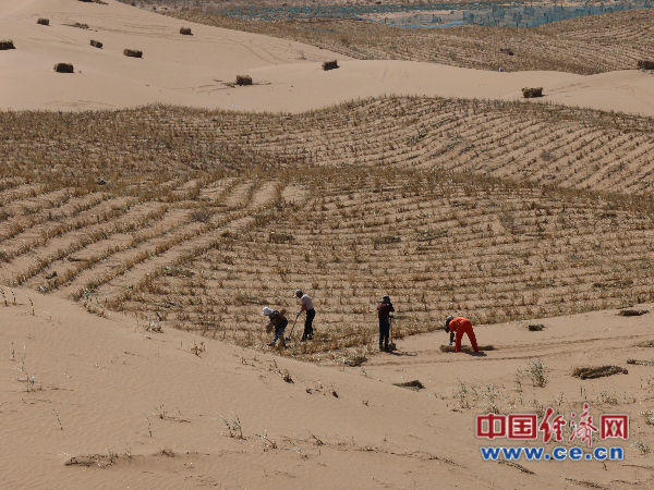 中衛(wèi)騰格里沙漠腹地治沙現(xiàn)場 中國經(jīng)濟網(wǎng)記者裴小閣/攝
