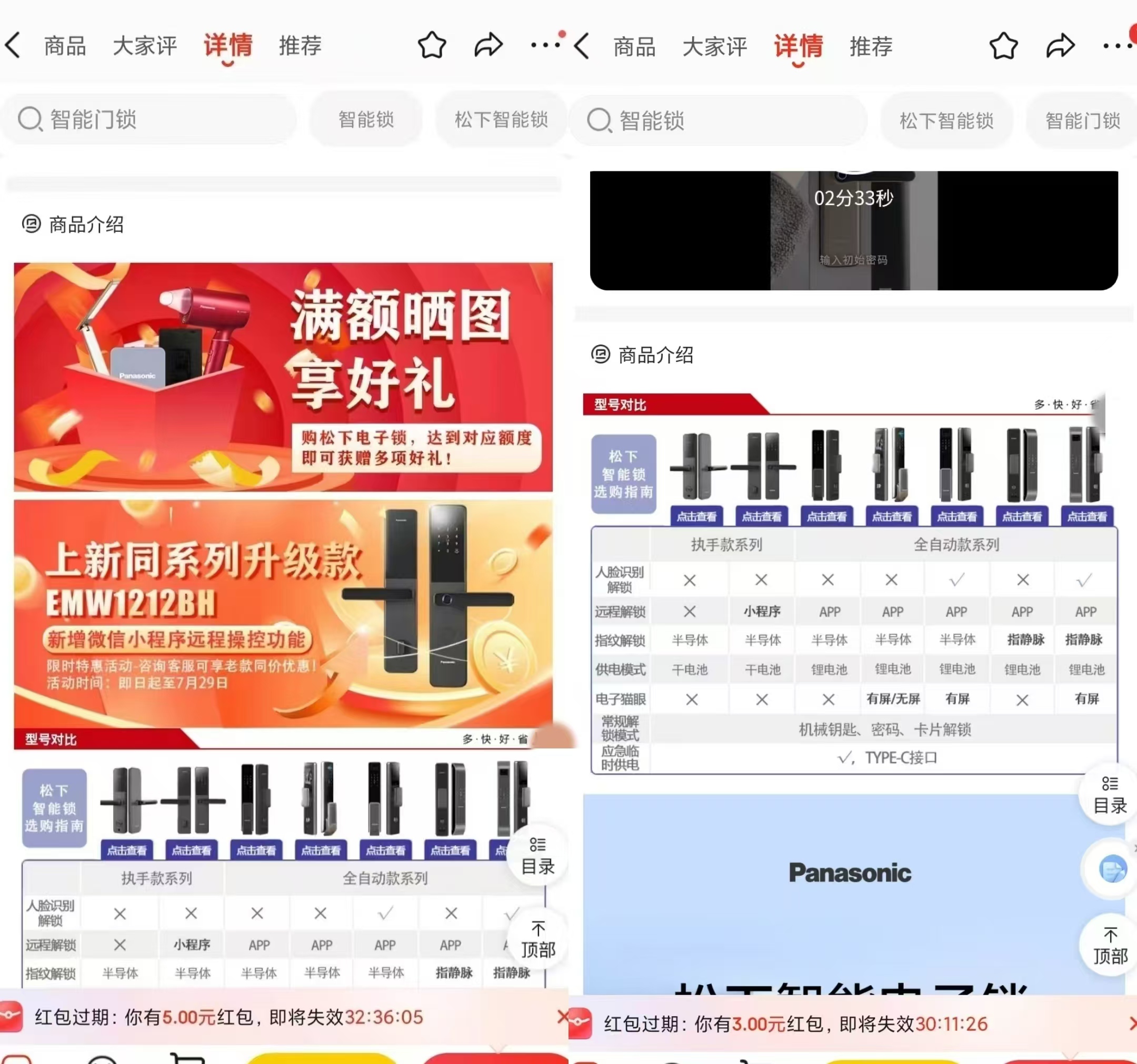 松下智能門鎖的商品介紹頁已做調(diào)整(前后對比)。資料圖片