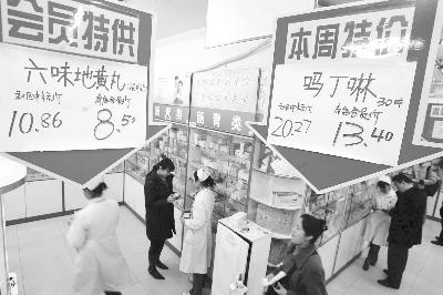 2月26日,利君堂大藥房北京安定門店內(nèi),市民正在選購特價藥,藥店里貼出了與社區(qū)醫(yī)院零差價藥品的價格對比。衛(wèi)生體制改革依然是本屆兩會的關(guān)注焦點之一。本報記者薛珺攝