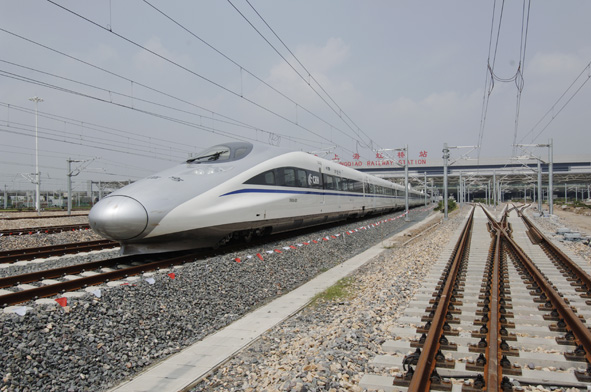 9月28日上午,在滬杭鐵路試運(yùn)行期間,由中國(guó)南車研制的CRH380A商用動(dòng)車組創(chuàng)造了416.6公里的世界鐵路最高時(shí)速。